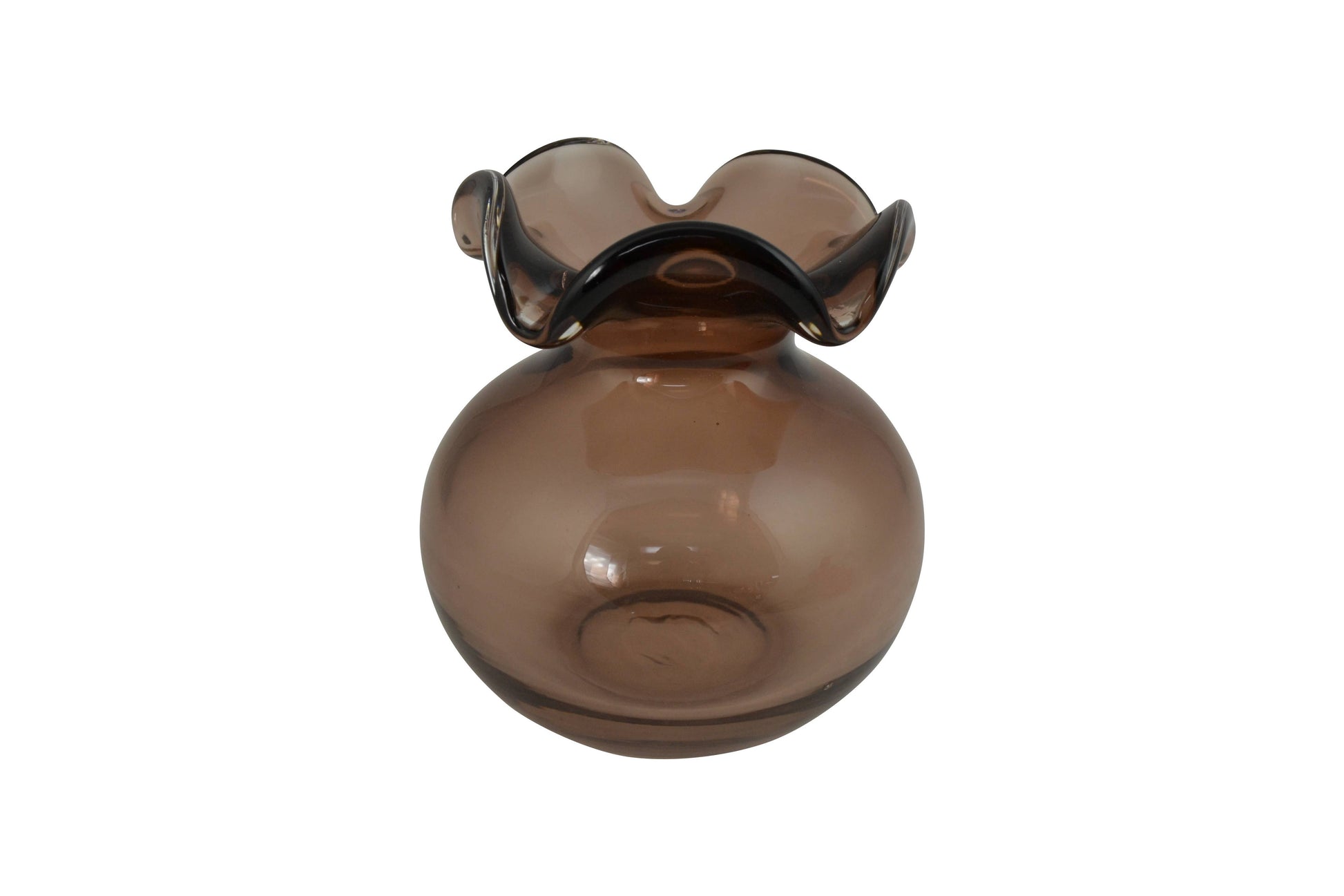 This handblown all glass vase is made out of a heavy, thick glass that is sure to last. Each vase has been handblown so no two are exactly alike. This vase measures 5"H x 5"W x 5"D
