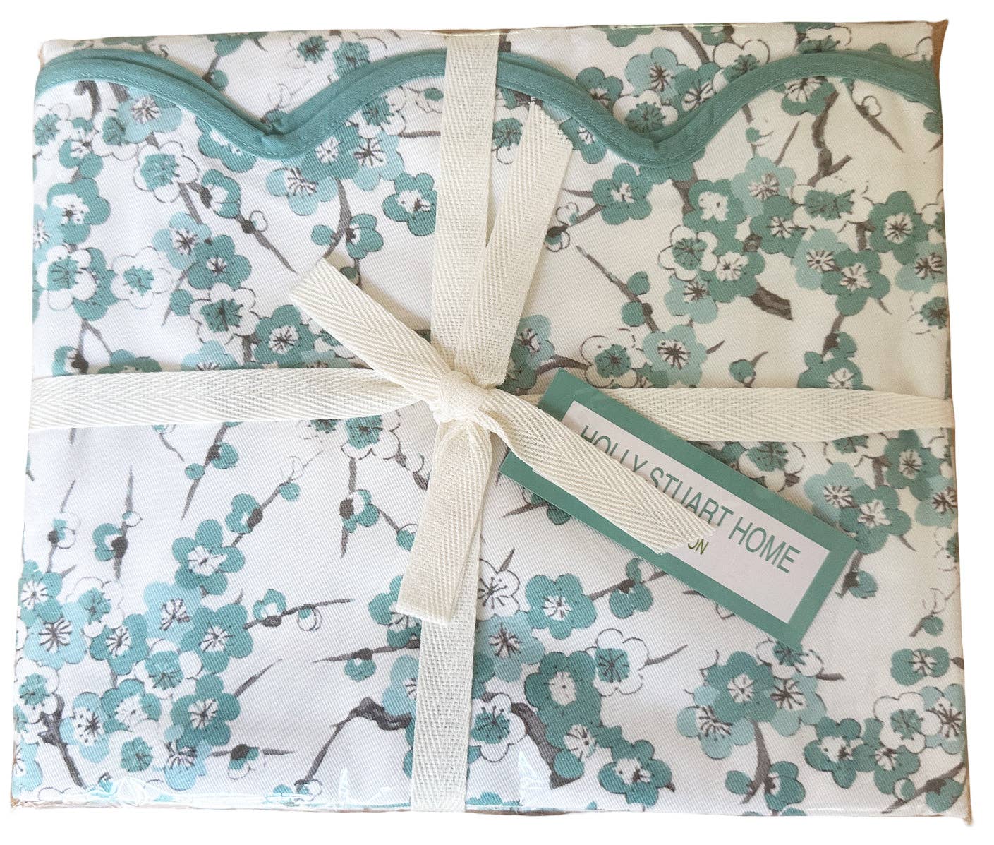 The Blossom Mahjong and Game Tablecloth in mid blue from Holly Stuart Home is a 56-inch square tablecloth crafted from 100% cotton poplin. It features a scallop edge, adding a touch of elegance to your table setting. This tablecloth is part of Holly Stuart Home's line, inspired by timeless designs. Enjoy setting the table as much as planning the meal with Holly Stuart Home.