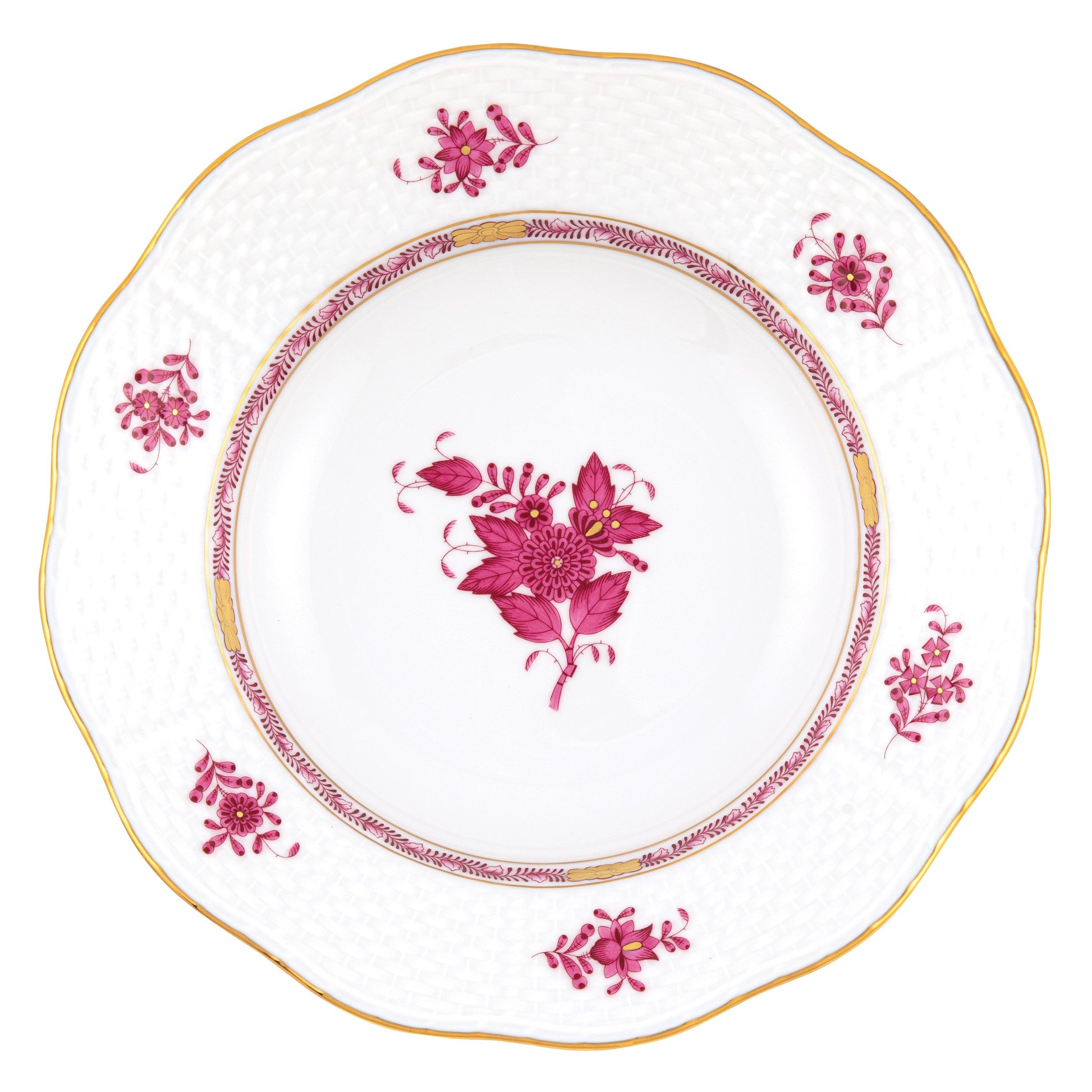 Herend Chinese Bouquet Raspberry Rim Soup Plate