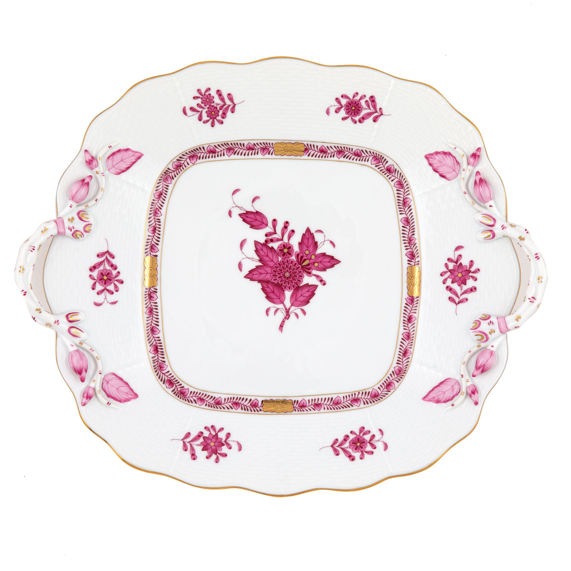 Herend Chinese Bouquet Raspberry Square Cake Plate With Handles