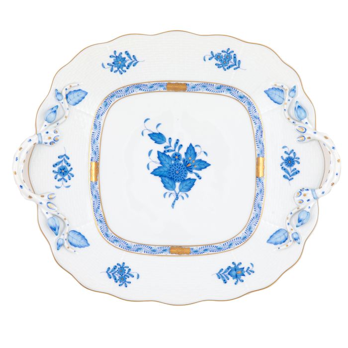 Herend Chinese Bouquet Blue Square Cake Plate With Handles