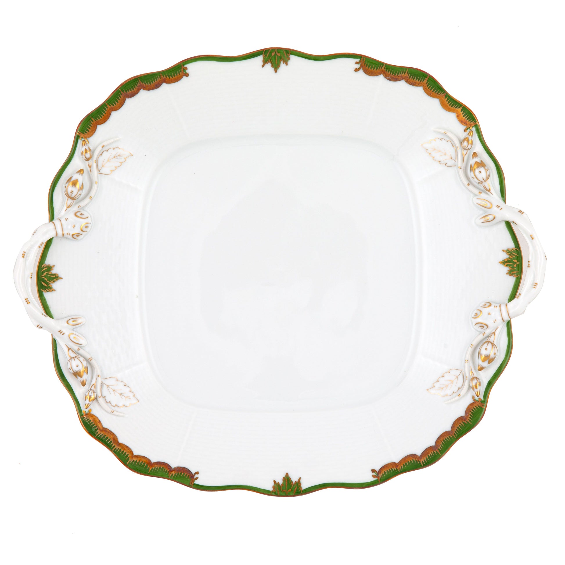 Herend Princess Victoria Dark Green Square Cake Plate with Handles