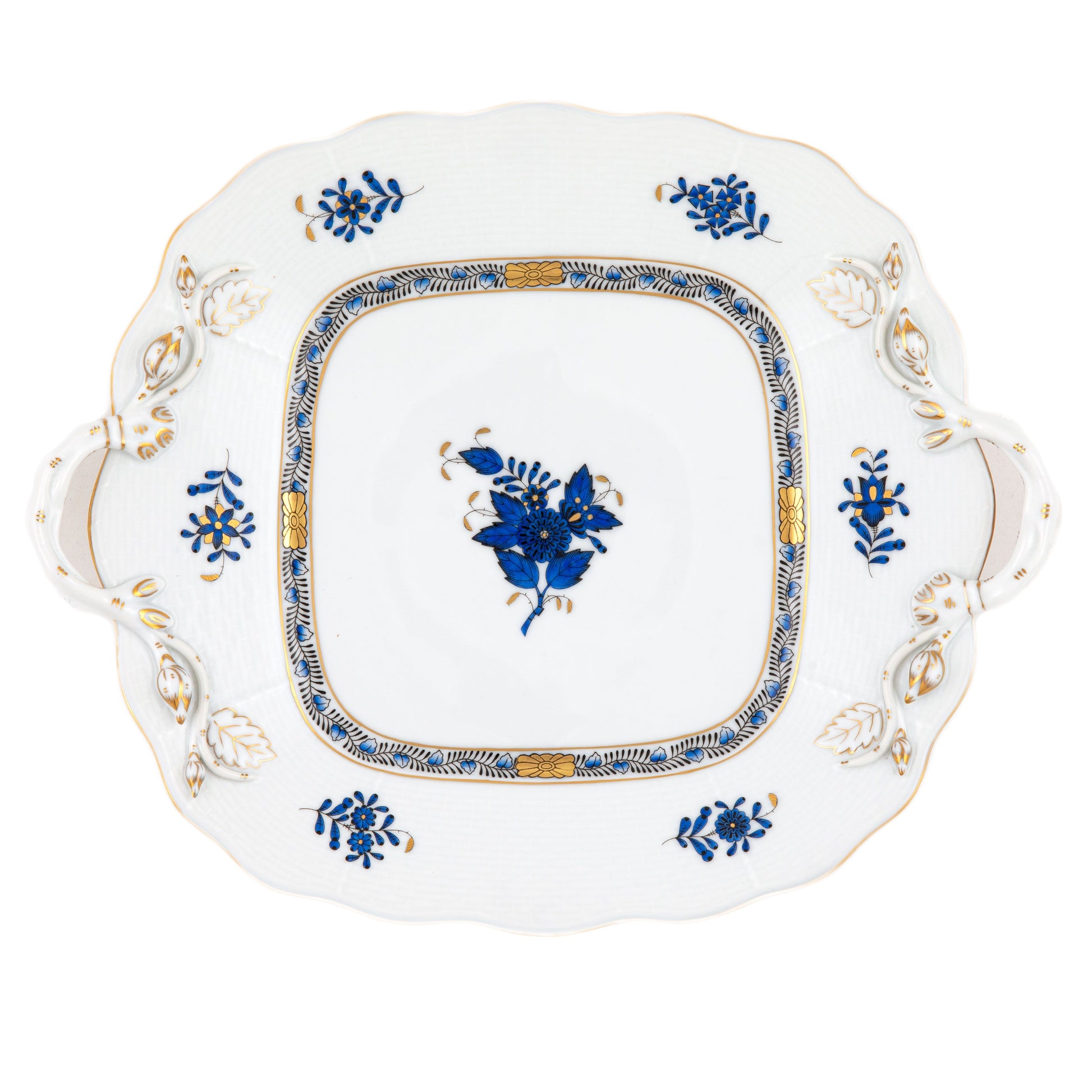 Herend Chinese Bouquet Black Sapphire Cake Plate with Handles