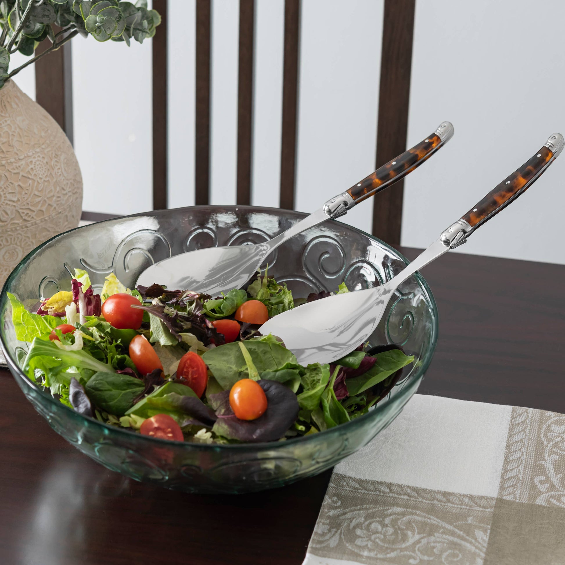 Serve fresh and delicious salads with French Home's elegant Laguiole salad servers with sophisticated and classic tortoise shell handles. These chic salad servers are comfortable to hold, look fabulous, and are ideal for everyday and special occasion use. This stunning set is dishwasher safe, making it as practical as it is beautiful. Featuring the traditional Laguiole design with a three-rivet curved handle and the iconic Napoleon Bee emblem on the bolster, this timeless style originated in the town of Laguiole, France, in the 1820s. Beautifully presented in a natural wood tray, this set is perfect for storage or gifting.
