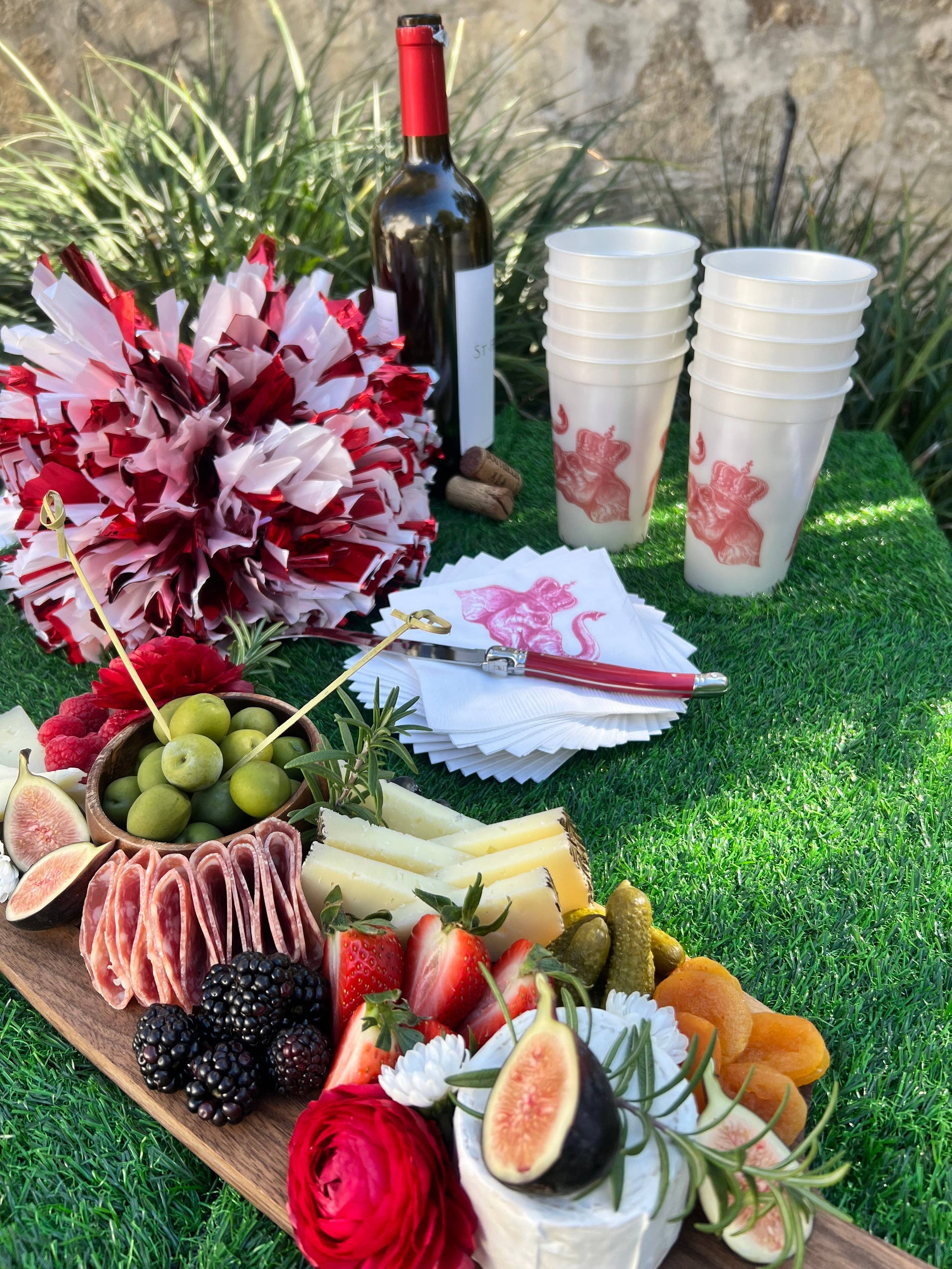 In New Orleans, we take our drinks to go! These Elephant cups are the icing on the cake when it comes to a curated party or tailgate. Plus, my hand-drawn illustrations are the perfect (sometimes cheeky) addition to your bar. Designed and printed in New Orleans. Dishwasher safe. Sleeved and tied with ribbon. DETAILS * Pearlized 16oz. Cups * Printed in Red ink * 12 Cups per Sleeve tied with ribbon.