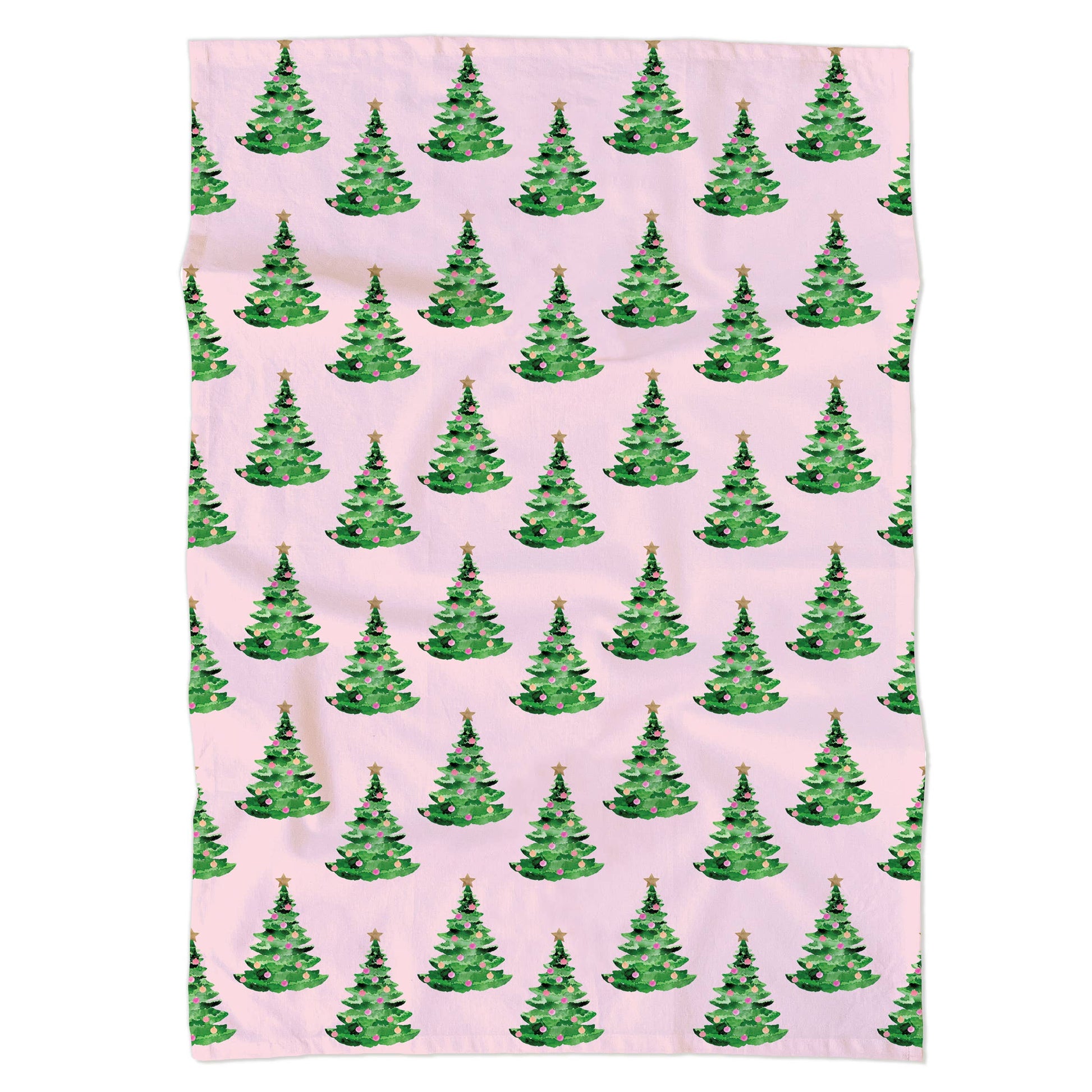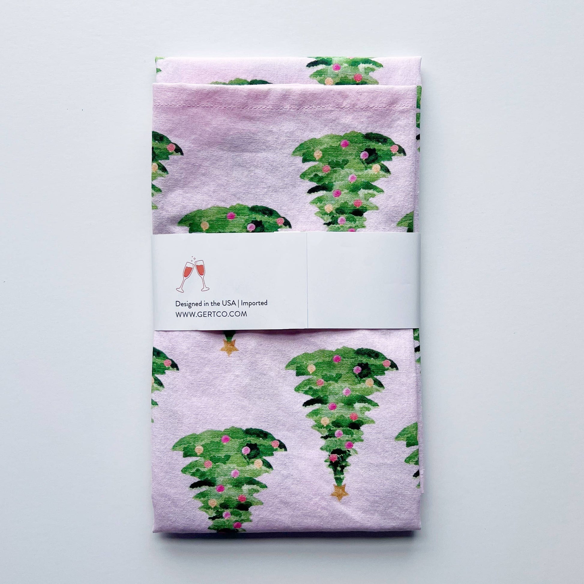 Pink Christmas Tea Towel | Christmas Trees on Pink Tea Towel