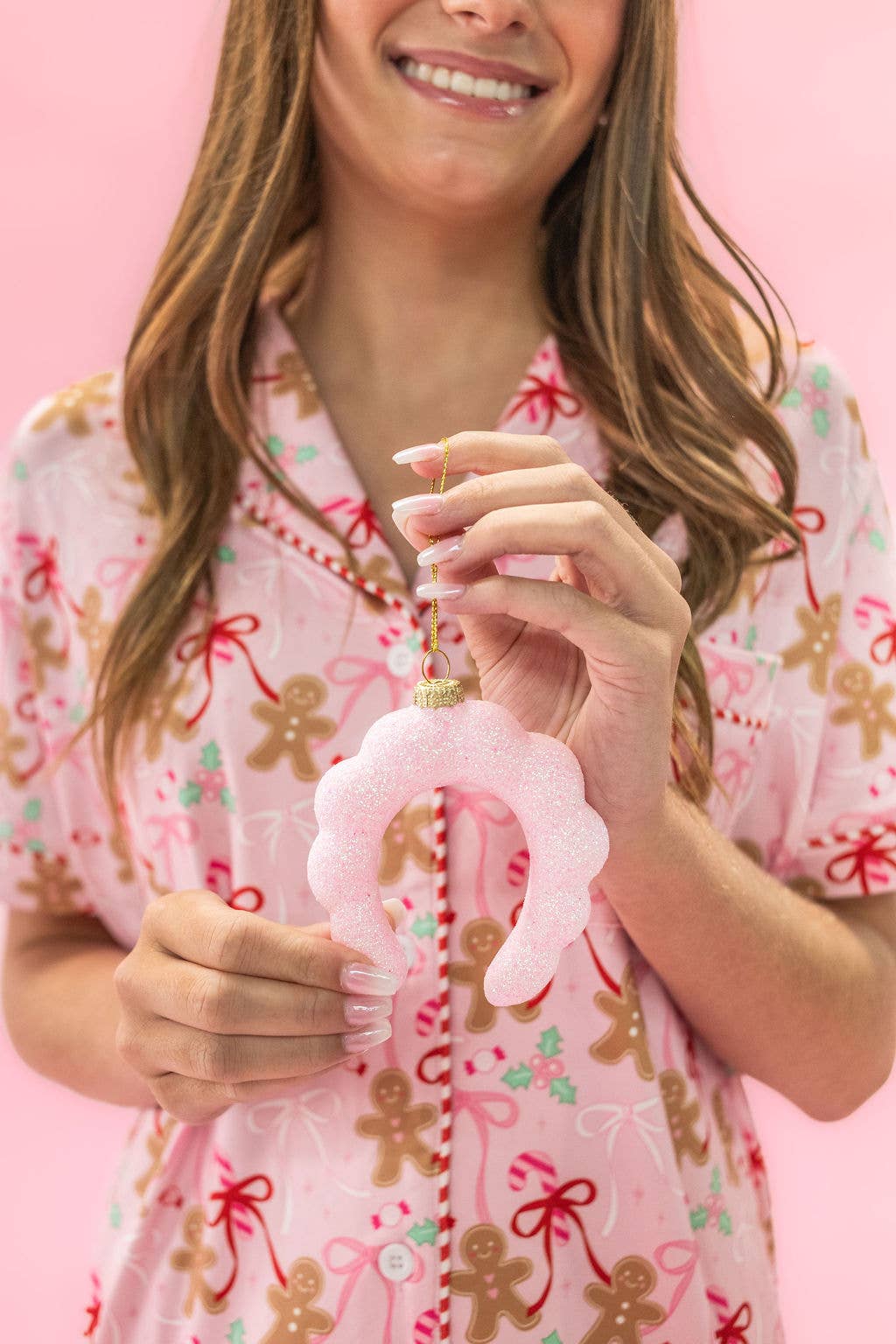 Chirstmas 2025 just got a little cuter. This ornament, inspired by the popular 'Get Ready With Me' trend, is a delightful addition to any home decor for Holiday 2025. With its glittery pink hue, our GRWM ornament embodies our love for a touch of sparkle. It's a fun, stylish piece that adds charm to your decor. Ideal for anyone who appreciates a touch of sparkle in their life! Hang it up, chill out, and let the holiday pampering begin! Hand Blown Glass includes gold string for easy hanging *All ornaments are handmade for us and will have slight variations.