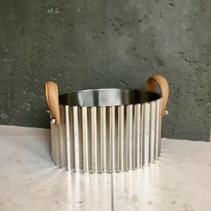 Stainless Steel Ribbed Ice Bucket with leather handles
