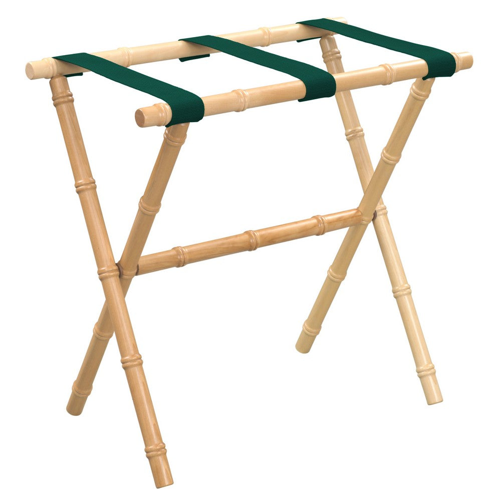 Wooden Bamboo Inspired Luggage Rack Natural & Green Straps